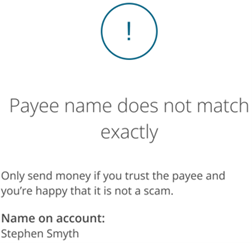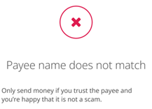If for any reason we’re unable to confirm that the name and account details match, you’ll see an ‘Unable to check payee name’ message on screen. This could happen if the receiving bank doesn’t respond, there may be a technical error or you are trying to verify an IBAN that isn’t in scope for VOP. We advise you to check the name with the payee by calling them on a known trusted phone number before continuing to create a payee or make a payment.